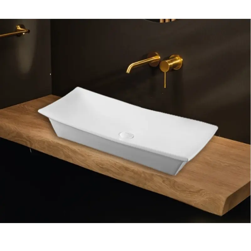 Раковина накладная Azario AZ имеет размер 80х39,5 см, обладает прямоугольной формой, без отверстия для смесителя. Модель гармонично впишется в интерьер любой ванной комнаты. Материал изготовления фаянс.