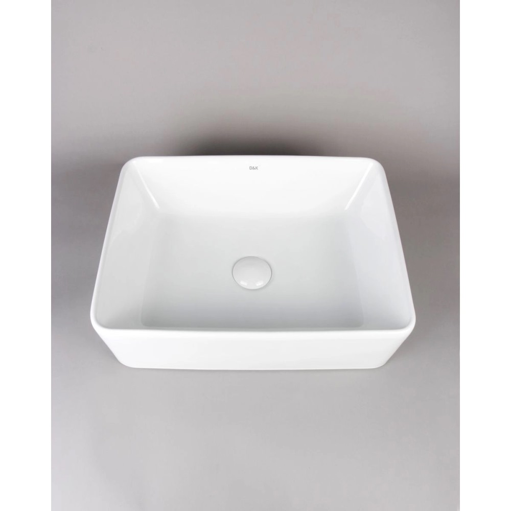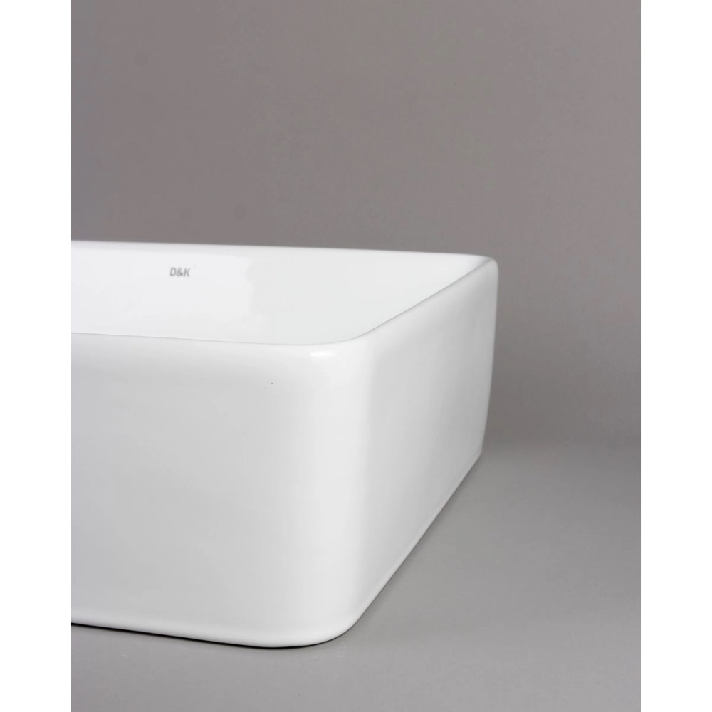 Раковина накладная D&K Berlin имеет размер 47,5х37 см, обладает прямоугольной формой, без отверстия для смесителя. Модель гармонично впишется в интерьер любой ванной комнаты. Материал изготовления санфарфор.