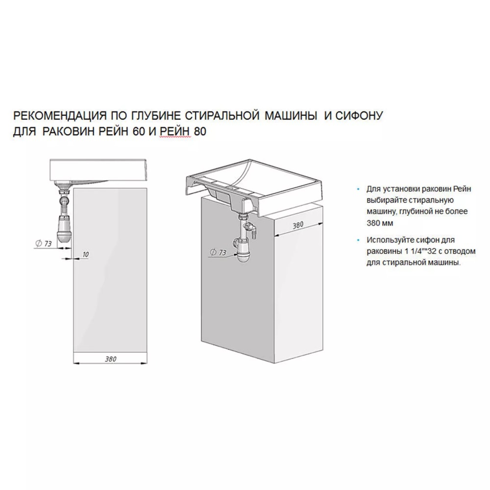 Раковина под стиральную машину Aquaton Рейн имеет размер 60х50 см, обладает прямоугольной формой. На 1 отверстие для смесителя. Модель гармонично впишется в интерьер любой ванной комнаты.