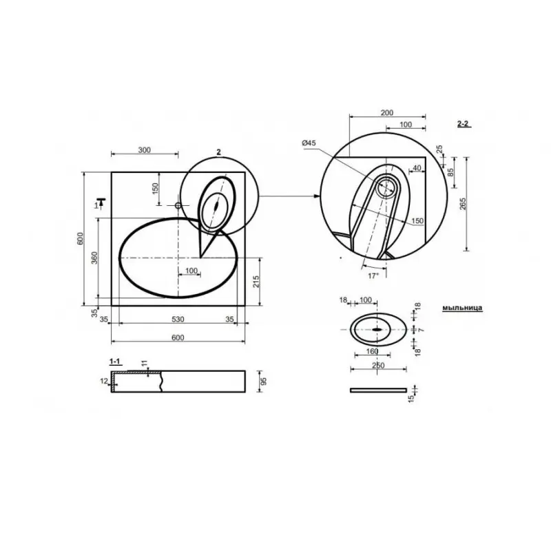 | Отверстия под смеситель | На 1 отверстие |