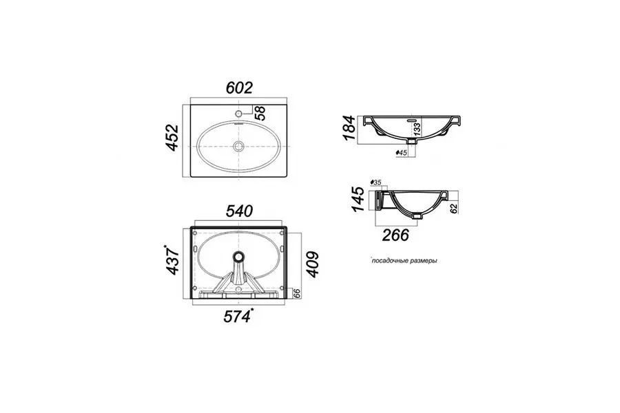 | Отверстия под смеситель | На 1 отверстие |