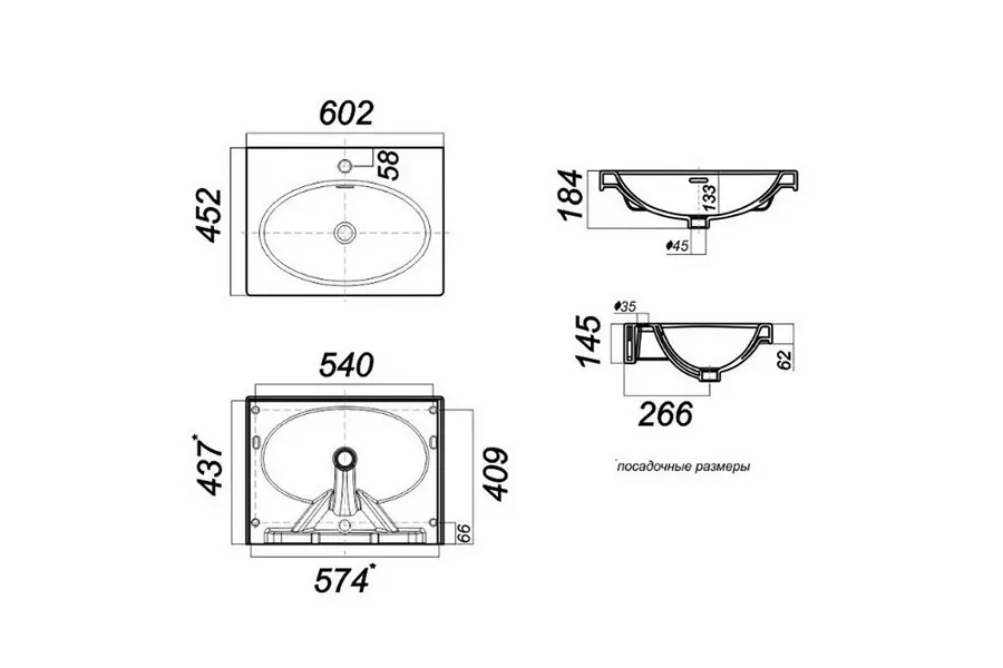 Раковина подвесная Sanita Luxe Next 60 NXT60SLWB01