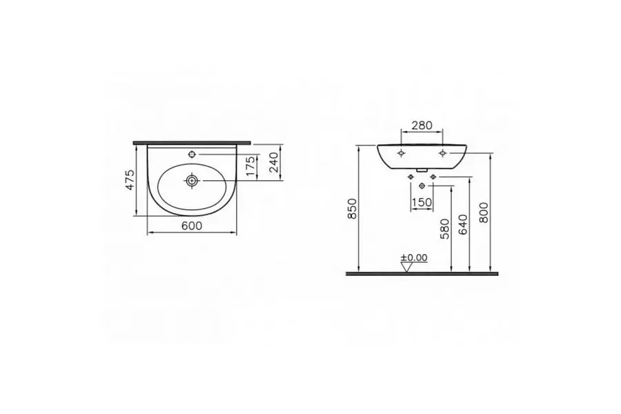 Раковина подвесная Vitra Zentrum 60х47,5