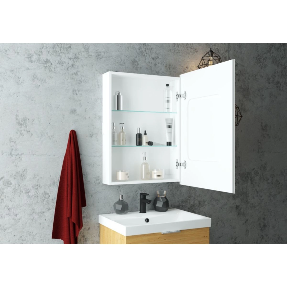 Шкаф зеркальный Агата Allure 60 правый с сенсором и розеткой Белый МВК005