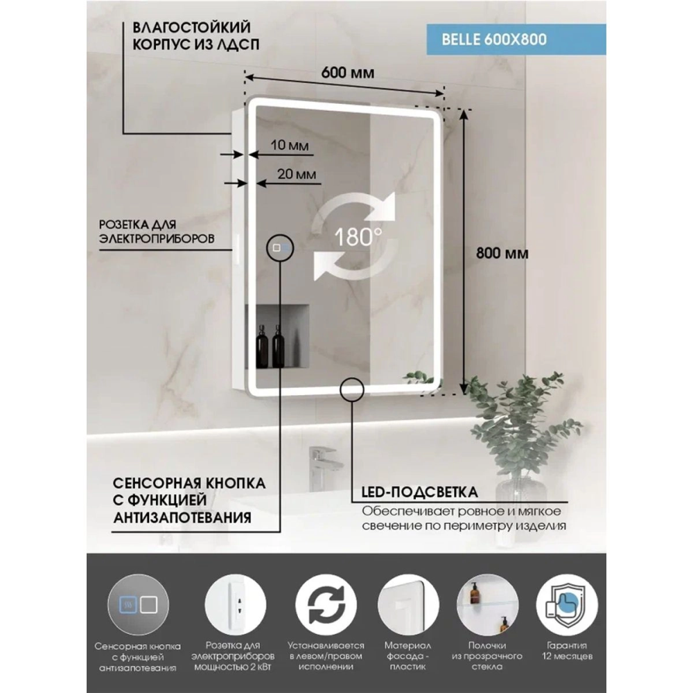 Шкаф зеркальный Агата из коллекции Belle правый с подогревом Race с механическим выключателем, универсальное — идеальное дополнение ванной комнаты в современном стиле. Модель изготовлена из качественных материалов, имеет прямоугольную форму и размер 60х80 см. В коллекции представлены — тумбы, раковины, шкафчики и пеналы.