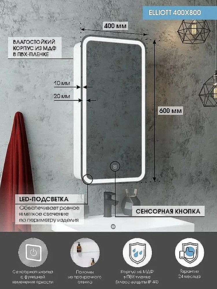 Шкаф зеркальный Агата Elliot 40 правый с сенсором Белый МВК057