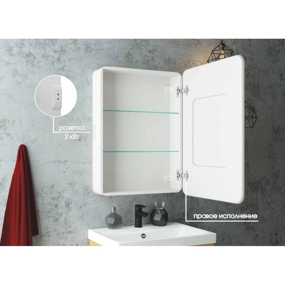 Шкаф зеркальный Агата Elliot 60 правый с сенсором и розеткой Белый МВК017