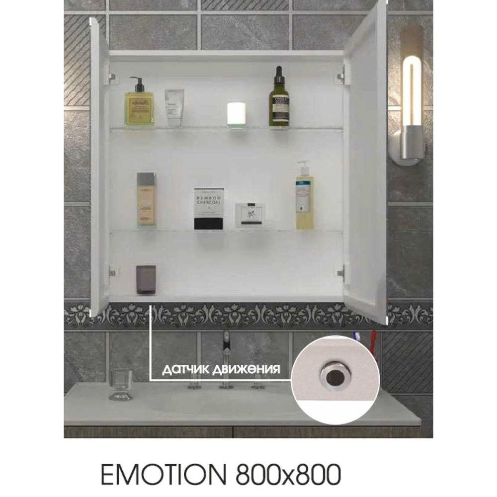 Шкаф зеркальный Агата из коллекции Emotion с датчиком движения Race с механическим выключателем, универсальное — идеальное дополнение ванной комнаты в современном стиле. Модель изготовлена из качественных материалов, имеет прямоугольную форму и размер 80х80 см. В коллекции представлены — тумбы, раковины, шкафчики и пеналы.