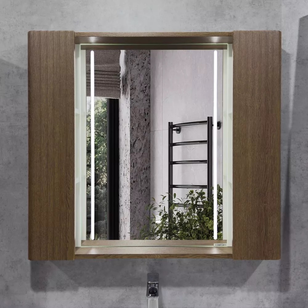 Шкаф зеркальный Comforty Ангара 90 с LED подсветкой и антизапотеванием Дуб тёмно-коричневый 00-00019939CF