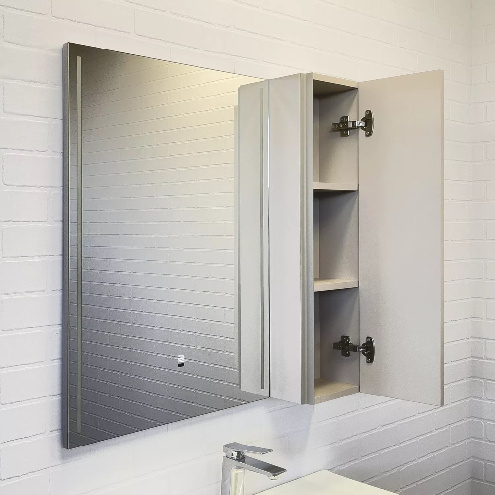 Шкаф зеркальный Comforty Бильбао 80 с LED подсветкой Серый шелк 00-00014154CF