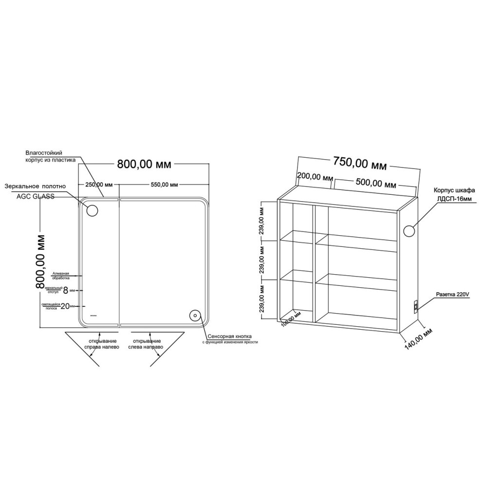 Шкаф зеркальный Grossman Адель 80 правый с LED подсветкой Белый 208004