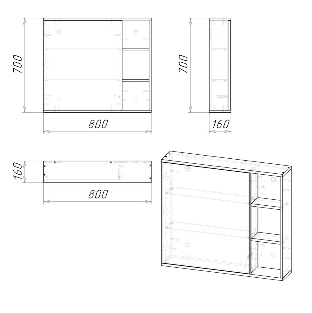 Шкаф зеркальный Grossman Форта 80 Дуб темный 2080022