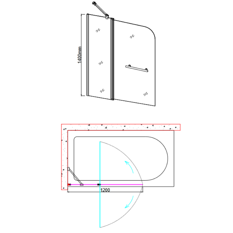 Шторка для ванны Taliente TA обладает размером 120х140 см. Конструкция состоит из 2 секций. Устанавливается на любые прямоугольные ванны с ровными горизонтальными бортами.