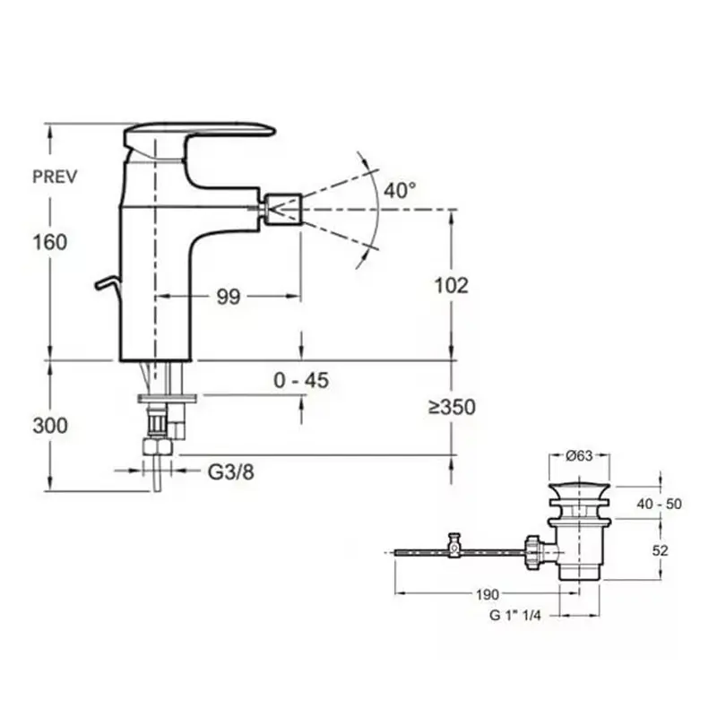 Смеситель для биде Jacob Delafon Kumin с донным клапаном E99456-CP