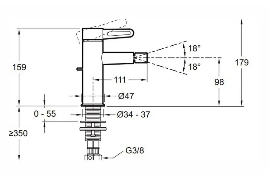 Смеситель для биде Jacob Delafon Nouvelle Vague с донным клпаном E78342-BLV