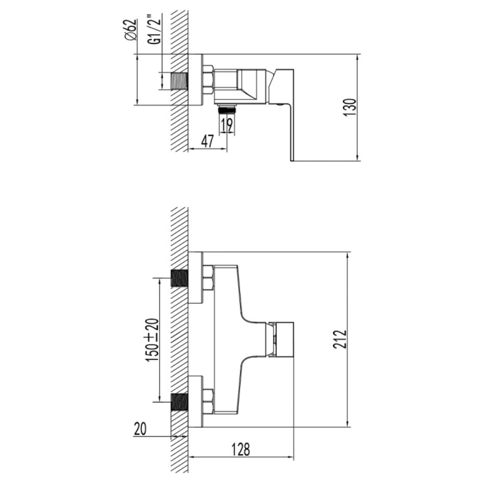 Смеситель для душа Azario Eddie без излива. Изготовлен из качественных материалов и имеет защитное покрытие, что способствует устойчивости к коррозии и резким перепадам температуры. Управление рычажное, настенный монтаж на два отверстия.