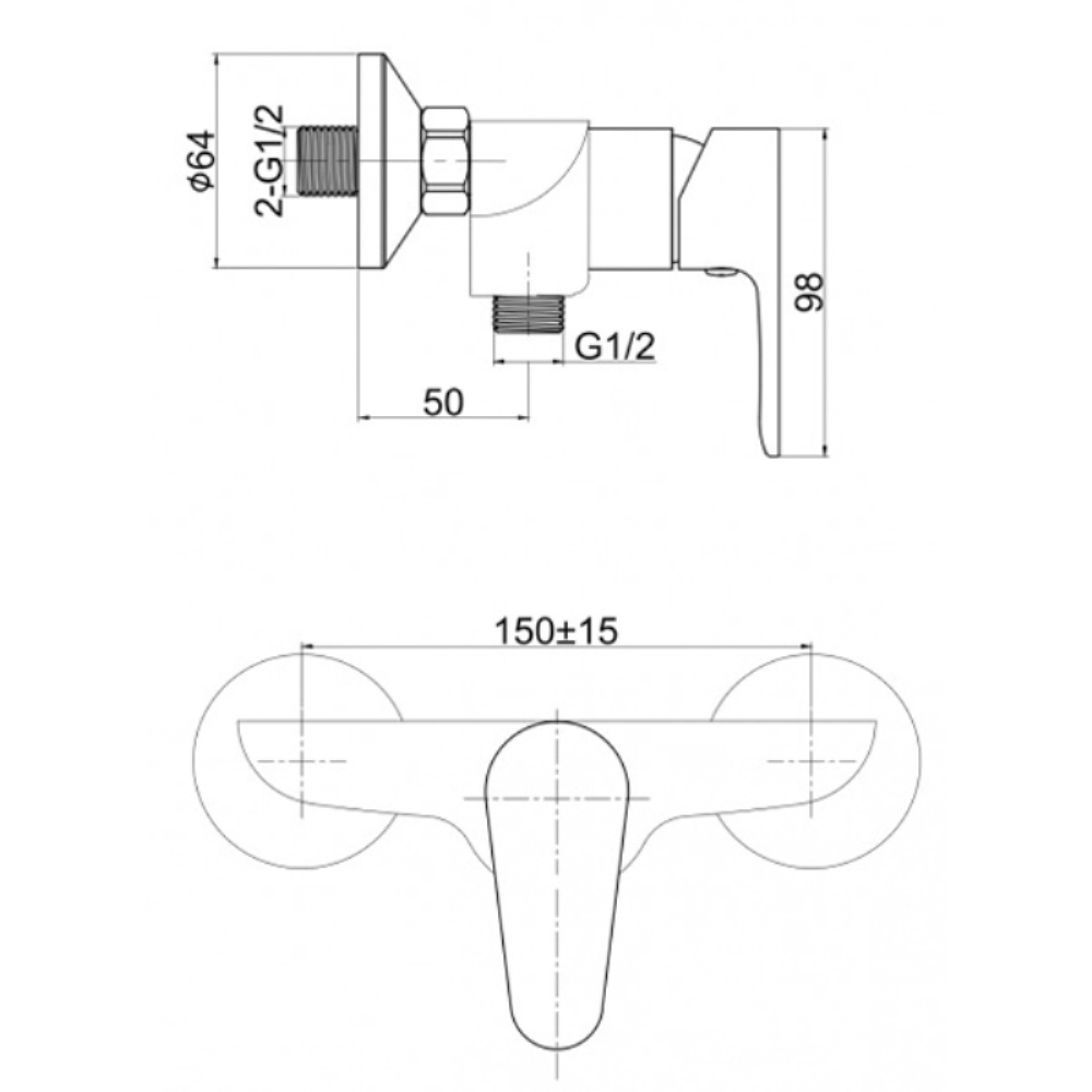 Смеситель для душа Cersanit Cersania без излива. Изготовлен из качественных материалов и имеет защитное покрытие, что способствует устойчивости к коррозии и резким перепадам температуры. Управление рычажное, настенный монтаж на два отверстия.