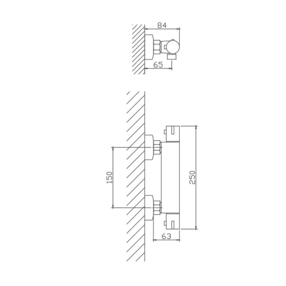 Смеситель для душа Haiba HB809 без излива. Изготовлен из качественных материалов и имеет защитное покрытие, что способствует устойчивости к коррозии и резким перепадам температуры. Управление термостат, настенный монтаж на два отверстия.