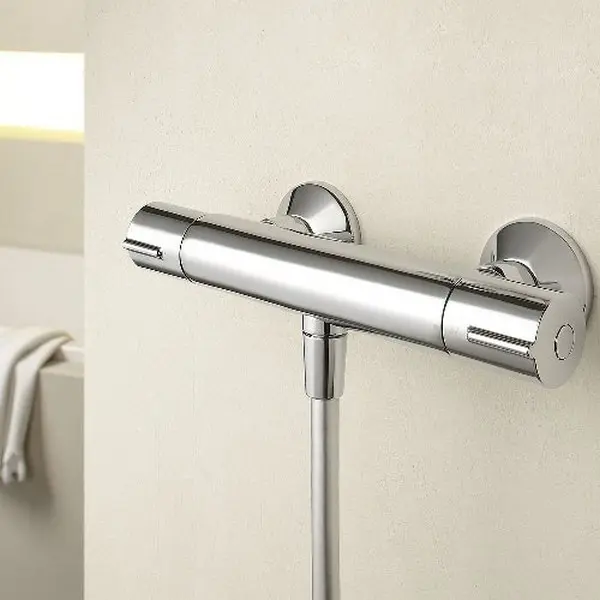 Смеситель для душа Jacob Delafon July E8455-CP оснащен термостатической системой регулирования температурой и напором воды. Настенный монтаж на 2 отверстия. Без излива.Смесители представляют собой сантехническое оборудование, оказывающее влияние на комфортность выполнения домашних дел и гигиенических процедур. Выбирая этот аксессуар для своего дома, необходимо учесть, что существуют смесители, имеющие определенное функциональное назначение и универсальные модели, в которых функции совмещены. Они классифицируются по типу управления и бывают: одновентильными; двухвентильными; термостатическими; джойстиковыми; сенсорными (электронными); кнопочными. Смесители имеют горизонтальный или вертикальный тип монтажа и традиционную (в форме трубки) или каскадную (плоскую и широкую) форму излива. Вода в смеситель подается двумя способами: через жесткую или гибкую подводку. А в зависимости от того, где устанавливается смеситель, выбирают его размеры. Для кухонной мойки подойдет высокая модель, тогда как для ванны лучше выбрать низкий смеситель. Он может крепиться настенным, напольным или набортным способом. Современные смесители — это не просто сантехническое оборудование, но и важный элемент дизайна ванной комнаты. Для защиты от коррозии его покрывают никелем, цинком, хромом или различными эмалями, делающие изделия более привлекательными и долговечными. Компании-производители выпускают модели, разные по стилю и цвету, а широкий и разнообразный модельный ряд позволяет выбрать подходящий аксессуар, соответствующий раковине, мойке или общему интерьеру ванной.