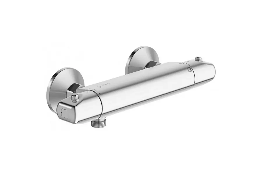 Смеситель для душа Jacob Delafon Robust E75771-CP изготовлен из качественной латуни и имеет защитное покрытие, что способствует устойчивости к коррозии и резким перепадам температуры. Управление термостатическое, настенный монтаж на два отверстия.
