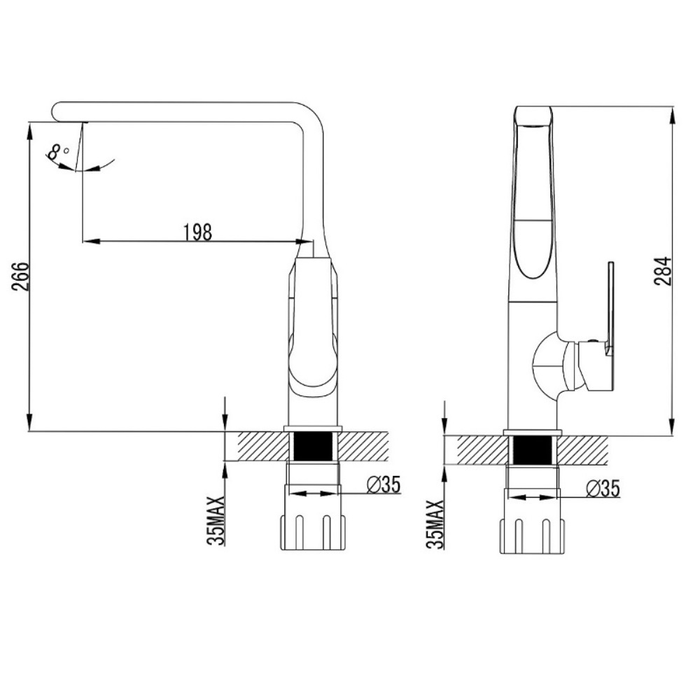 Смеситель для кухни Azario Faro имеет поворотный излив. Изготовлен из качественной латуни и имеет защитное покрытие, что способствует устойчивости к коррозии и резким перепадам температуры. Рычажное управление, горизонтальный монтаж на одно отверстие.