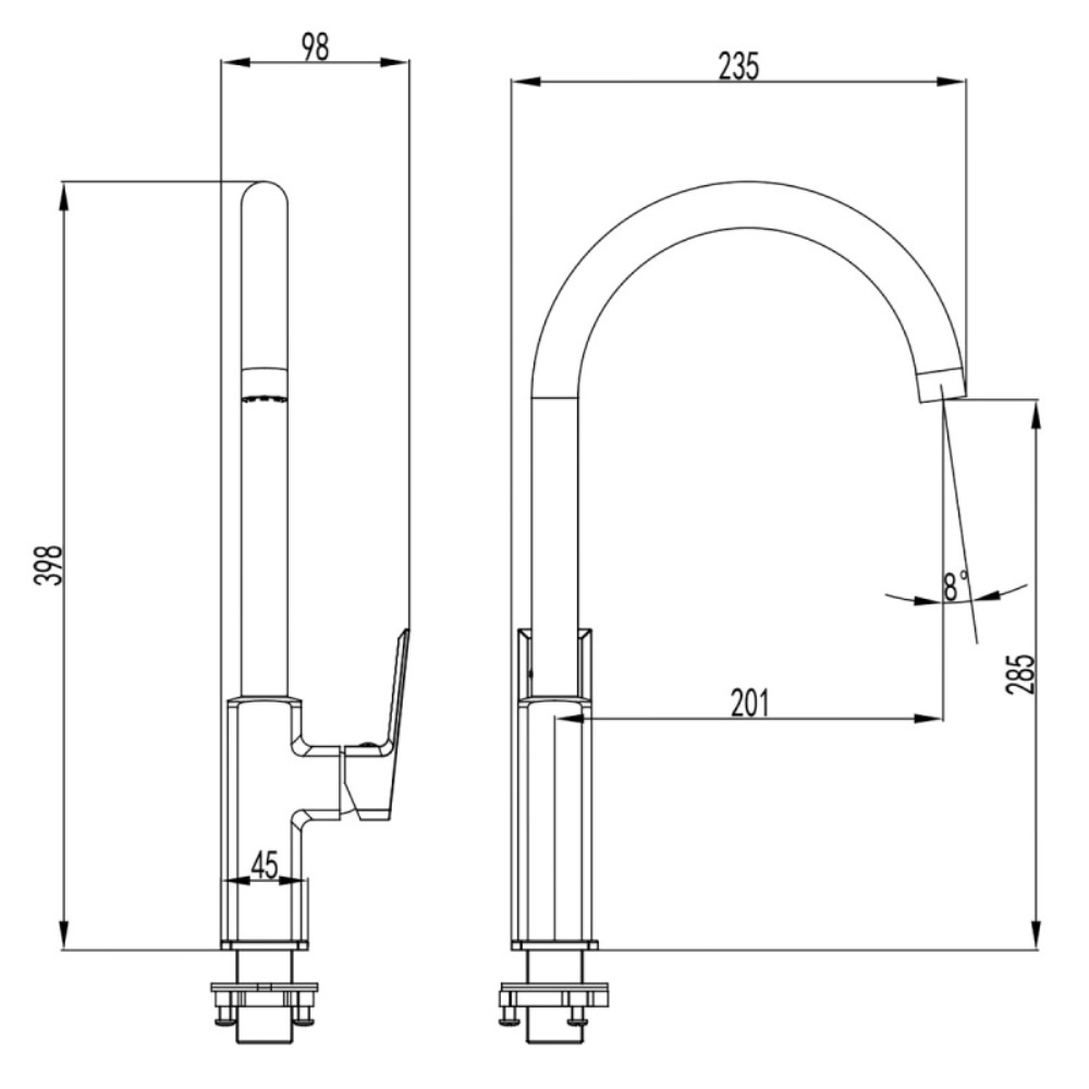 Смеситель для кухни Azario Hardcore имеет поворотный излив. Изготовлен из качественной латуни и имеет защитное покрытие, что способствует устойчивости к коррозии и резким перепадам температуры. Рычажное управление, горизонтальный монтаж на одно отверстие.