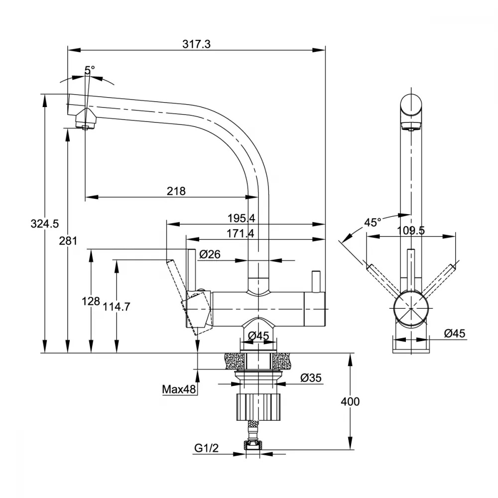 Смеситель для кухни Cersanit Crea с подключением фильтра Сатин 68224