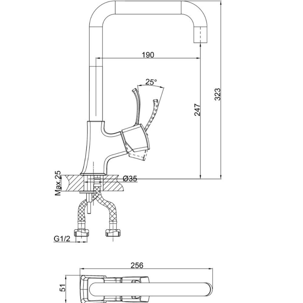 Смеситель для кухни D&K Rhein Bachимеет поворотный излив. Изготовлен из качественной латуни и имеет защитное покрытие, что способствует устойчивости к коррозии и резким перепадам температуры. Рычажное управление, горизонтальный монтаж на одно отверстие.