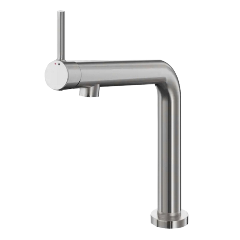 Смеситель для кухни Esko Kitchen K6 имеет поворотный излив. Изготовлен из качественной латуни и имеет защитное покрытие, что способствует устойчивости к коррозии и резким перепадам температуры. Рычажное управление, горизонтальный монтаж на одно отверстие.