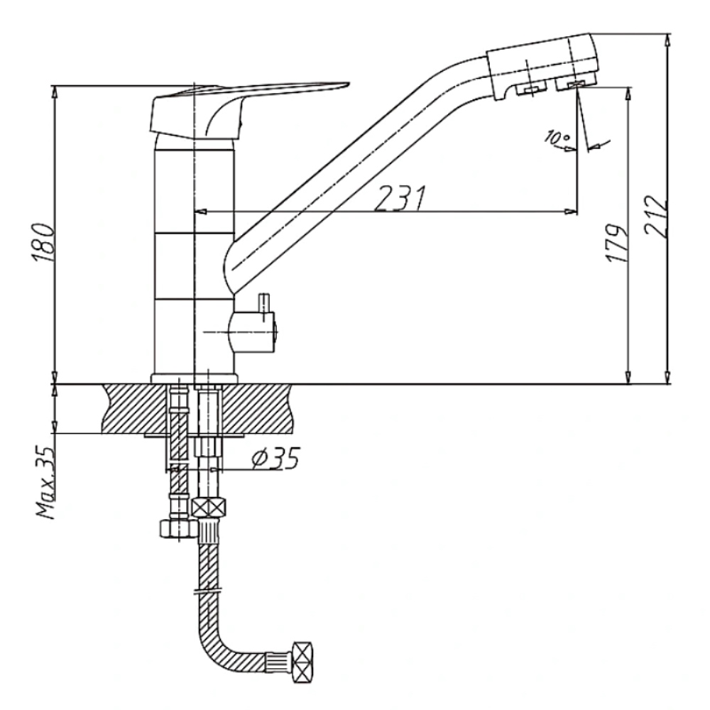 Смеситель для кухни Haiba HB04 имеет поворотный излив. Изготовлен из качественных материалов и имеет защитное покрытие, что способствует устойчивости к коррозии и резким перепадам температуры. Управление рычажное, горизонтальный монтаж на одно отверстие.