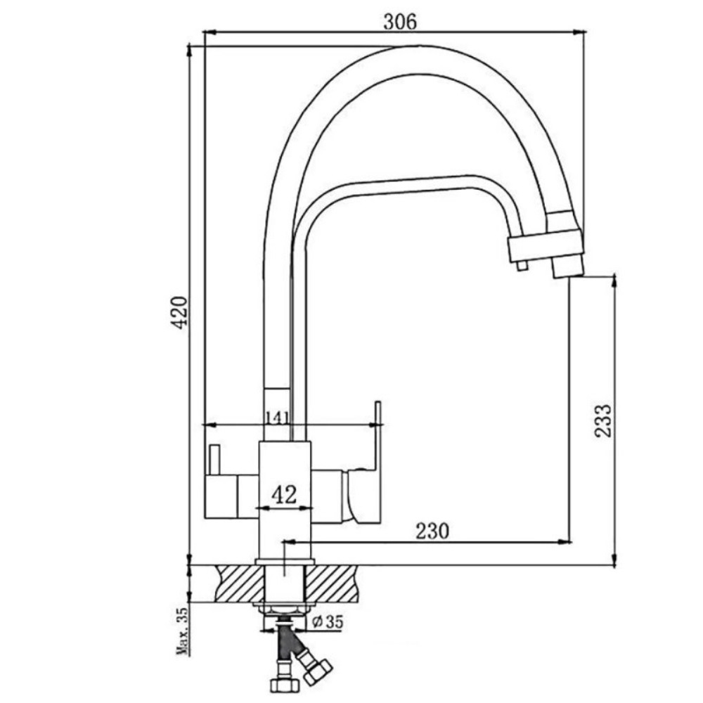 Смеситель для кухни Haiba HB615-7 имеет гибкий излив. Изготовлен из качественных материалов и имеет защитное покрытие, что способствует устойчивости к коррозии и резким перепадам температуры. Управление рычажное, горизонтальный монтаж на одно отверстие.