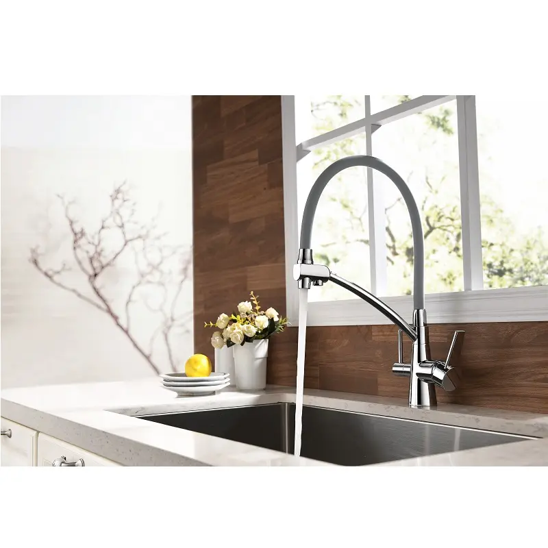 Смеситель для кухни Lemark Comfort LM3071C-Gray с подключением к фильтру Хром / Серый