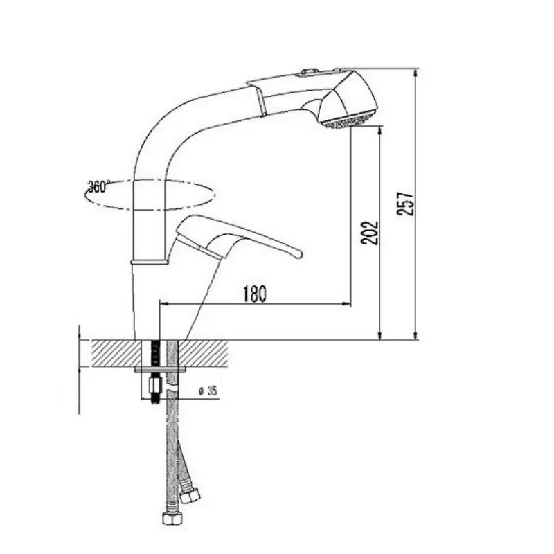 Смеситель для кухни Polygran Элара имеет Вытяжной излив. Изготовлен из качественной латуни и имеет защитное покрытие, что способствует устойчивости к коррозии и резким перепадам температуры. Рычажное управление, горизонтальный монтаж на одно отверстие.