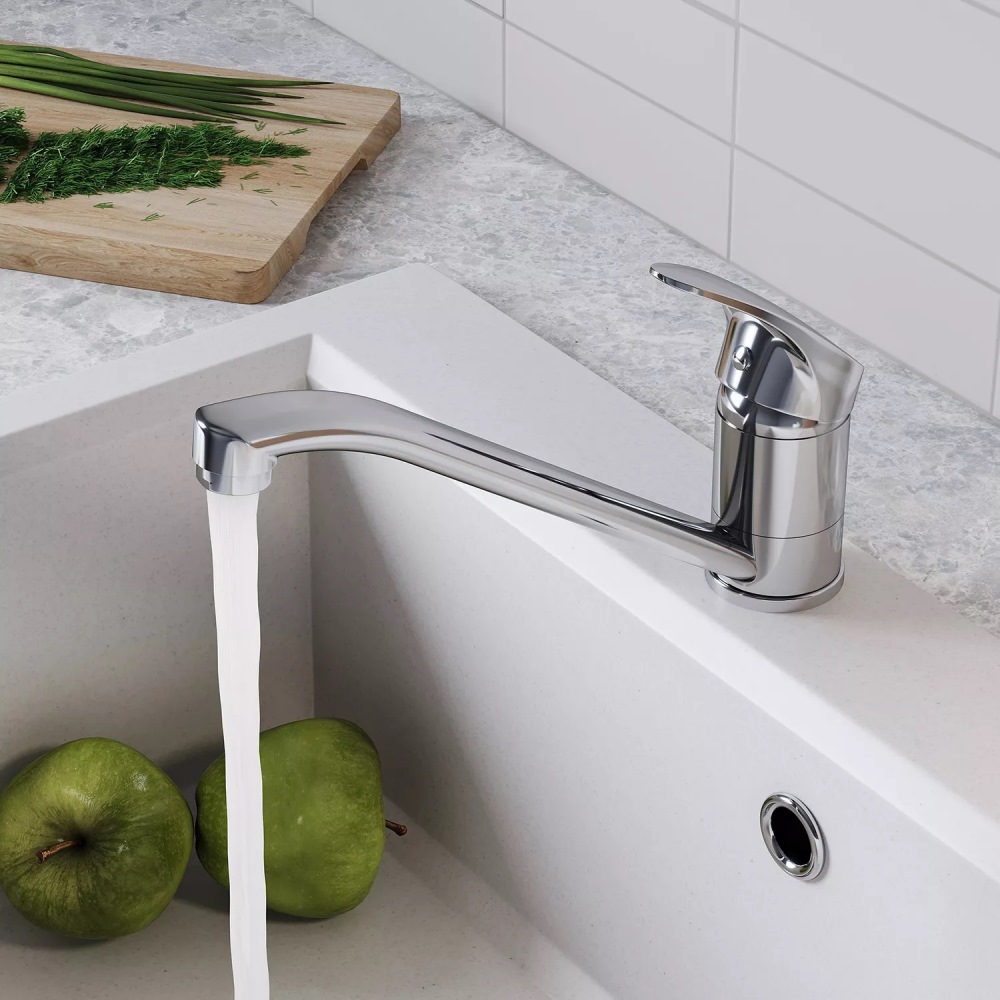 Смеситель для кухни Santek Мавис имеет поворотный излив. Изготовлен из качественной латуни и имеет защитное покрытие, что способствует устойчивости к коррозии и резким перепадам температуры. Рычажное управление, горизонтальный монтаж на одно отверстие.