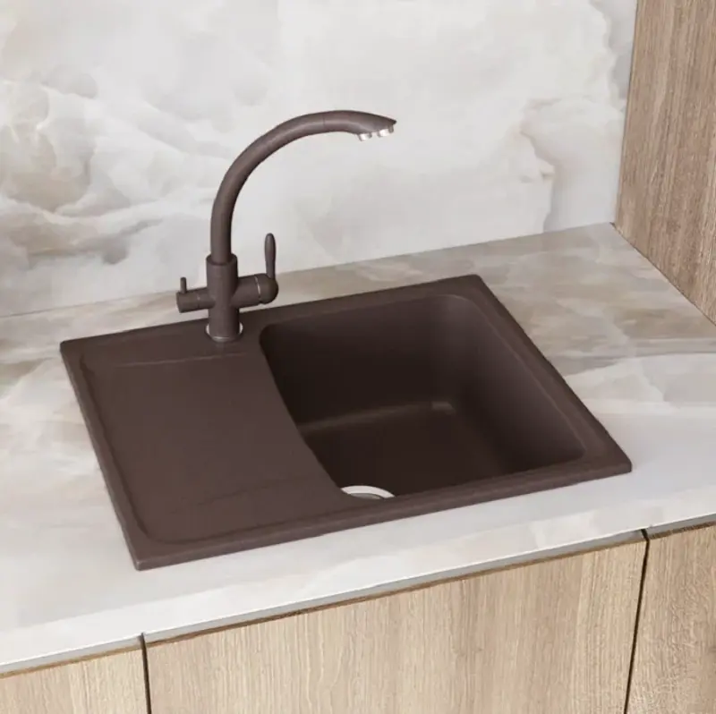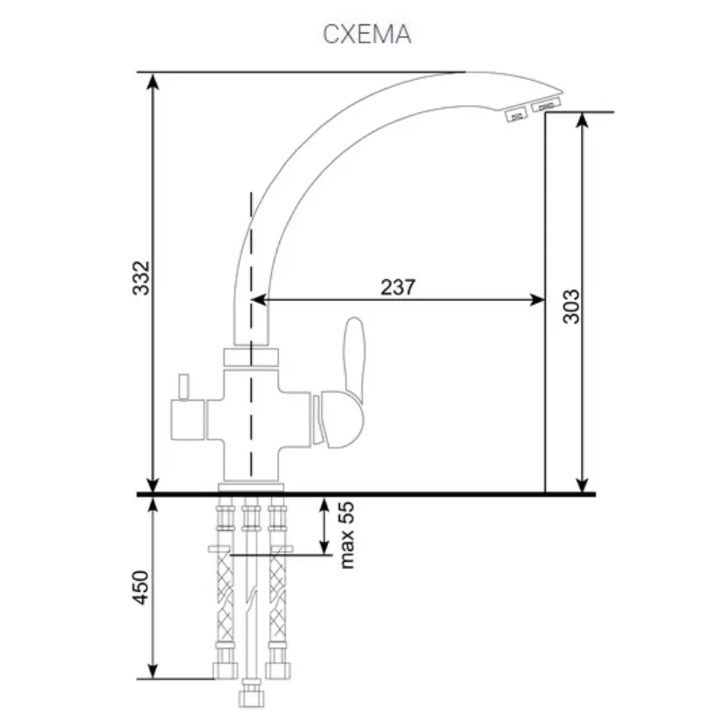 Смеситель для кухни Ulgran Classic U-017 с подключением к фильтру, имеет поворотный излив. Изготовлен из качественной латуни и имеет защитное покрытие, что способствует устойчивости к коррозии и резким перепадам температуры. Рычажное управление, горизонтальный монтаж на одно отверстие.