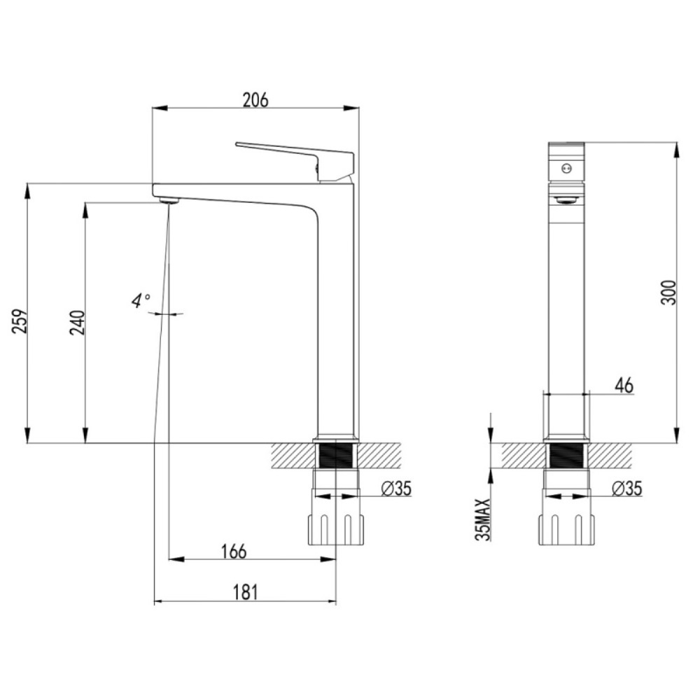 | Тип изделия | Смеситель для накладной раковины высокий |