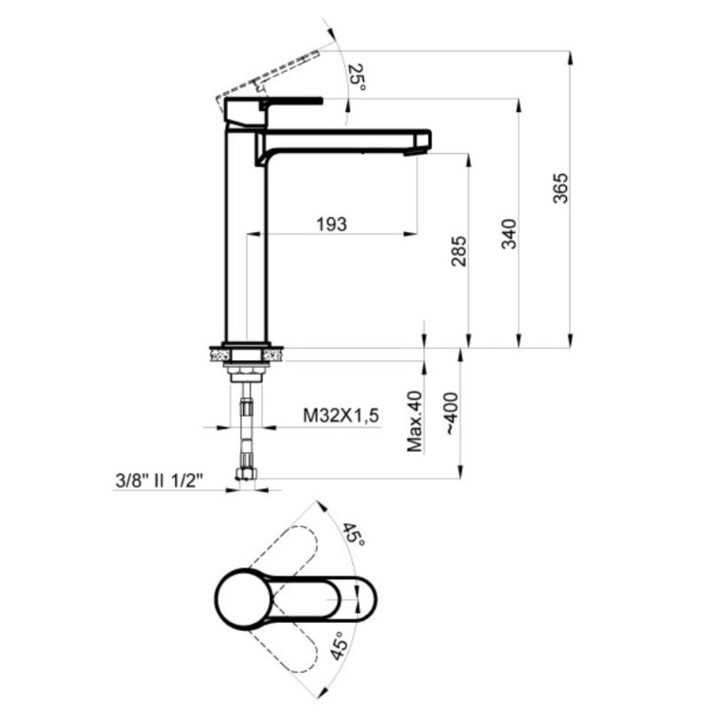 | Тип изделия | Смеситель для накладной раковины высокий |