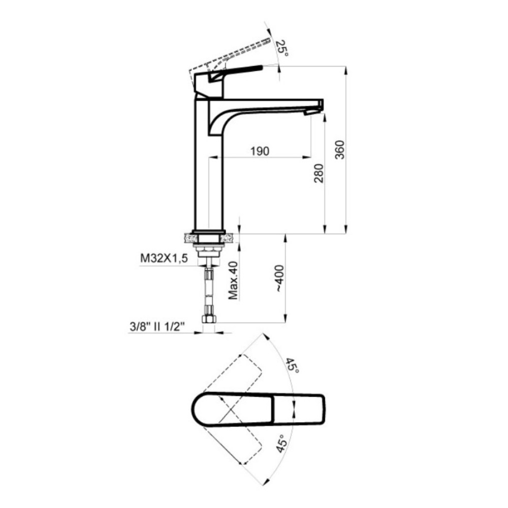 | Тип изделия | Смеситель для накладной раковины высокий |
