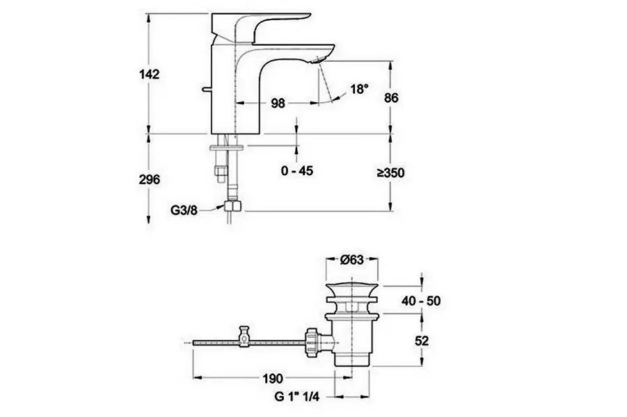 | Донный клапан | Отдельно |