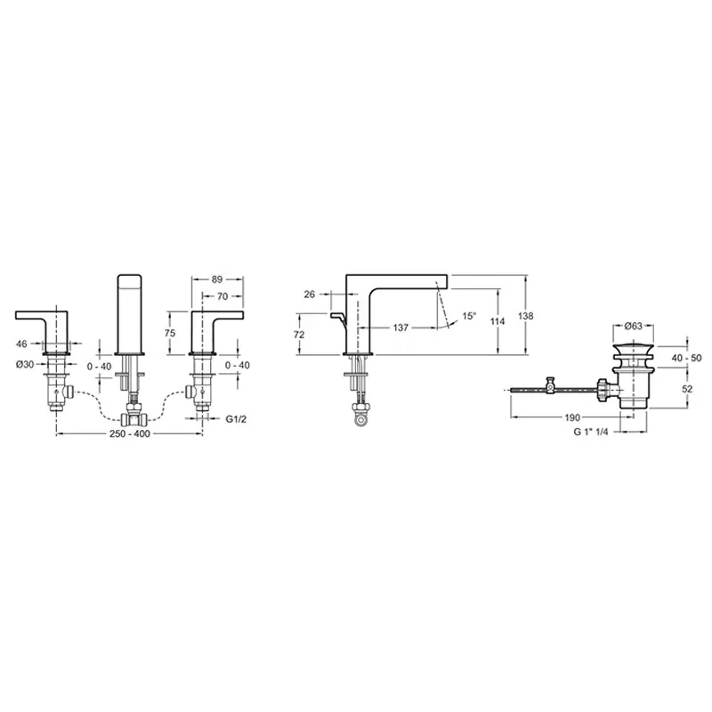 Смеситель для раковины Jacob Delafon Strayt с донным клапаном на 3 отверстия E37331-CP