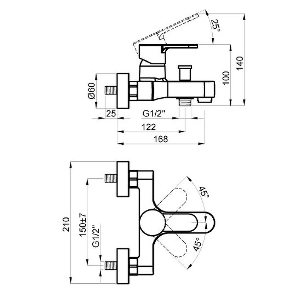 Смеситель для ванны Azario Tevis имеет литой излив. Изготовлен из качественной латуни и имеет защитное покрытие, что способствует устойчивости к коррозии и резким перепадам температуры. Управление рычажное, настенный монтаж на два отверстия.