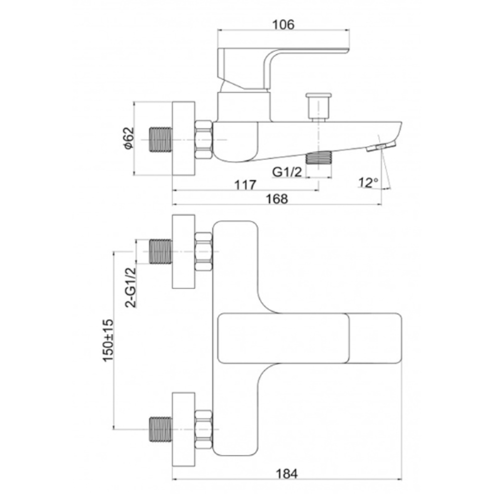 Смеситель для ванны Cersanit Geo имеет литой излив. Изготовлен из качественной латуни и имеет защитное покрытие, что способствует устойчивости к коррозии и резким перепадам температуры. Управление рычажное, настенный монтаж на два отверстия.