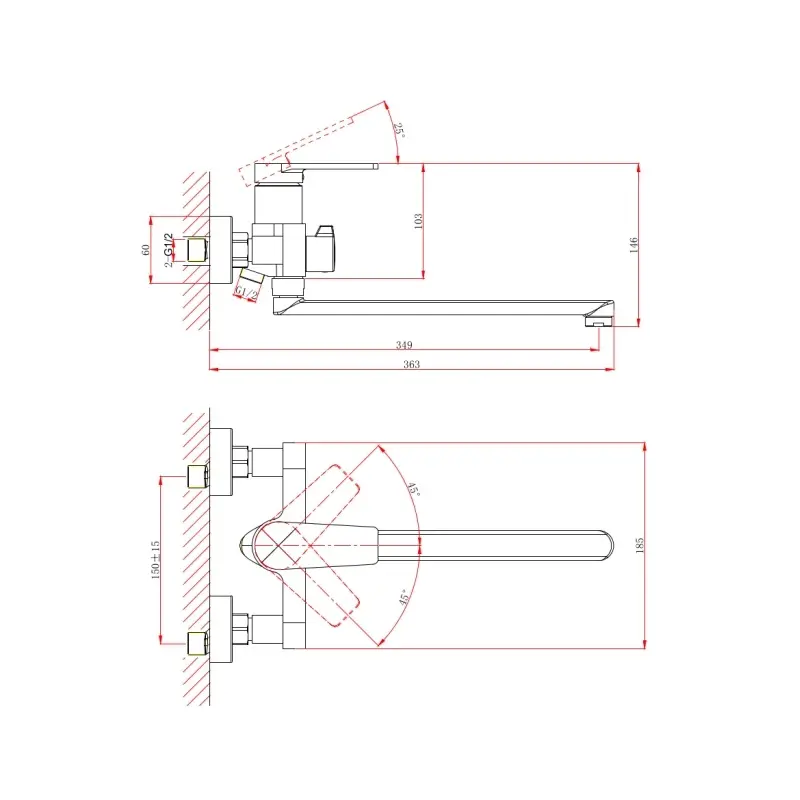 Смеситель для ванны D&K Bayern.Furth имеет поворотный излив. Изготовлен из качественной латуни и имеет защитное покрытие, что способствует устойчивости к коррозии и резким перепадам температуры. Управление рычажное, настенный монтаж на два отверстия.