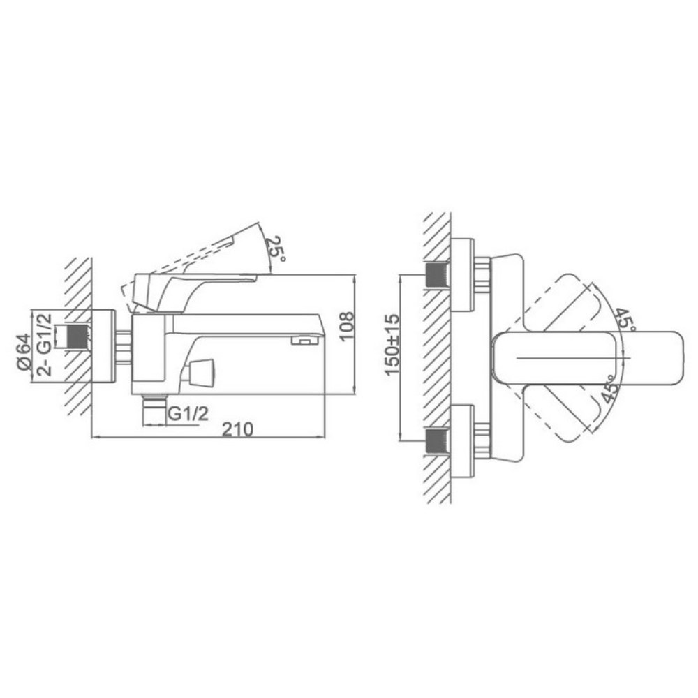 Смеситель для ванны D&K Berlin-Technische имеет литой излив. Изготовлен из качественной латуни и имеет защитное покрытие, что способствует устойчивости к коррозии и резким перепадам температуры. Рычажное управление, настенный монтаж на два отверстия.