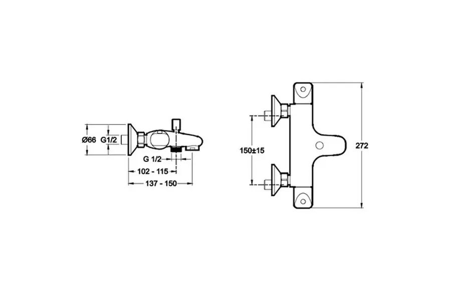 Смеситель для ванны Jacob Delafon Robust E75772-CP имеет литой излив. Изготовлен из качественной латуни и имеет защитное покрытие, что способствует устойчивости к коррозии и резким перепадам температуры. Управление термостатическое, настенный монтаж на два отверстия.
