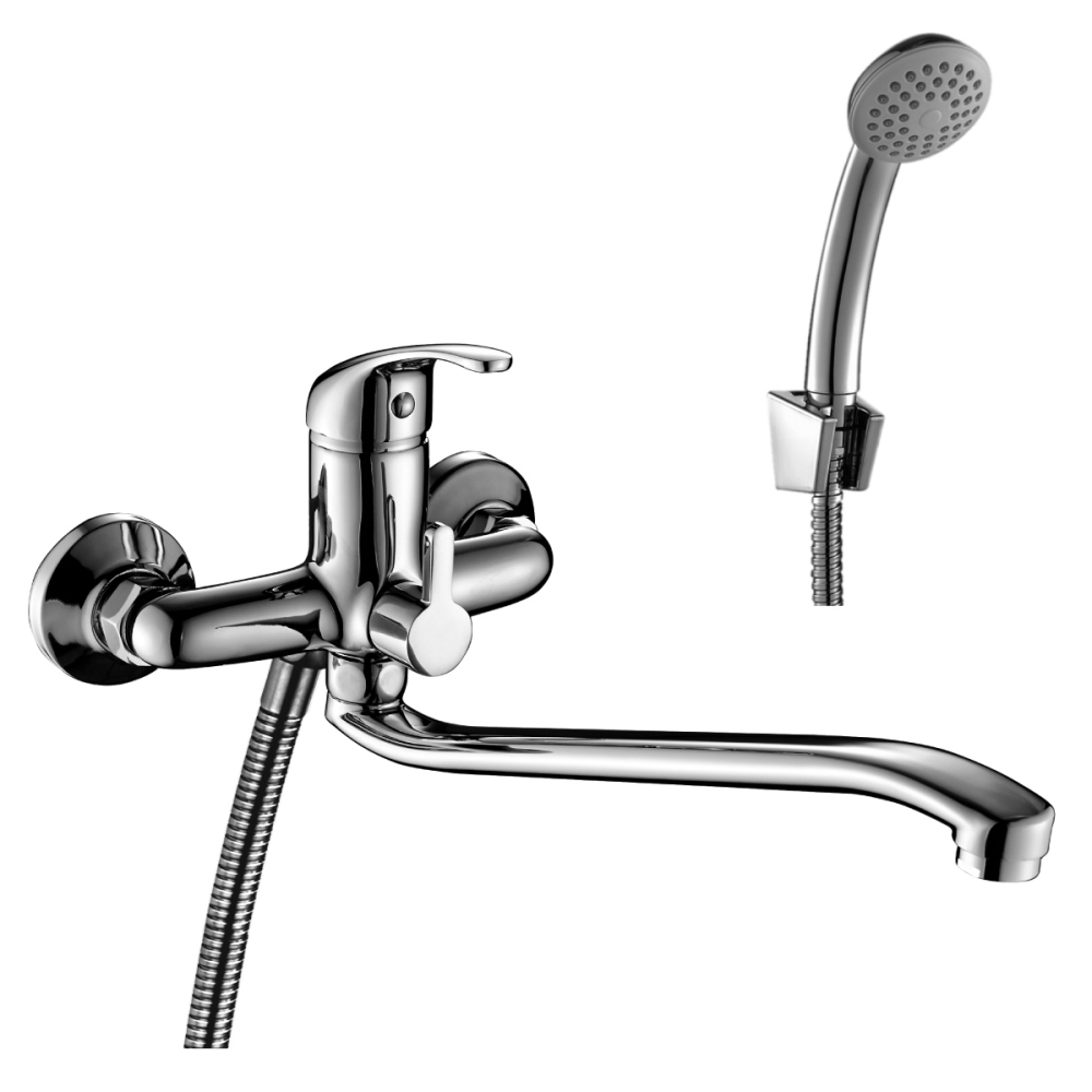Смеситель для ванны Rossinka A35 имеет поворотный излив. Изготовлен из качественной латуни и имеет защитное покрытие, что способствует устойчивости к коррозии и резким перепадам температуры. Управление рычажное, настенный монтаж на два отверстия.