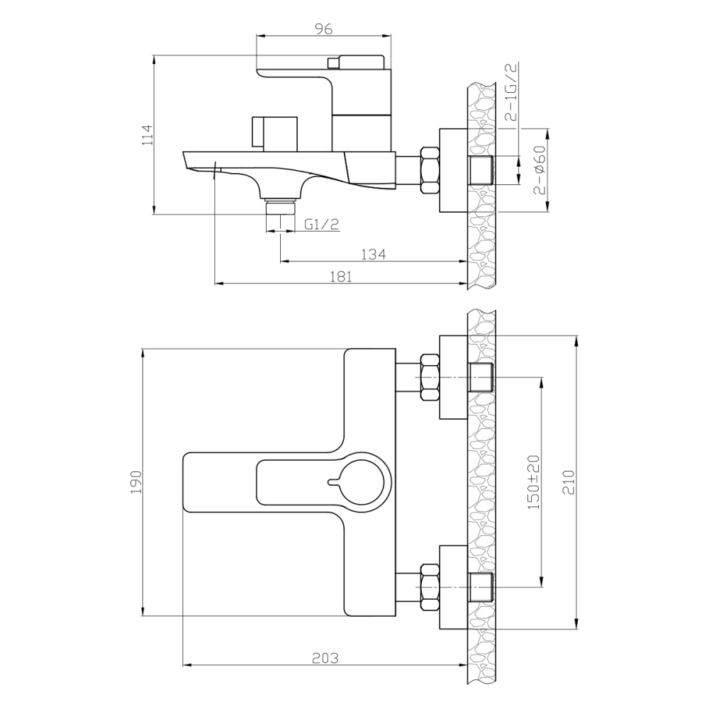 Смеситель для ванны Rossinka RS50 имеет литой излив. Изготовлен из качественной латуни и имеет защитное покрытие, что способствует устойчивости к коррозии и резким перепадам температуры. Управление рычажное, настенный монтаж на два отверстия.