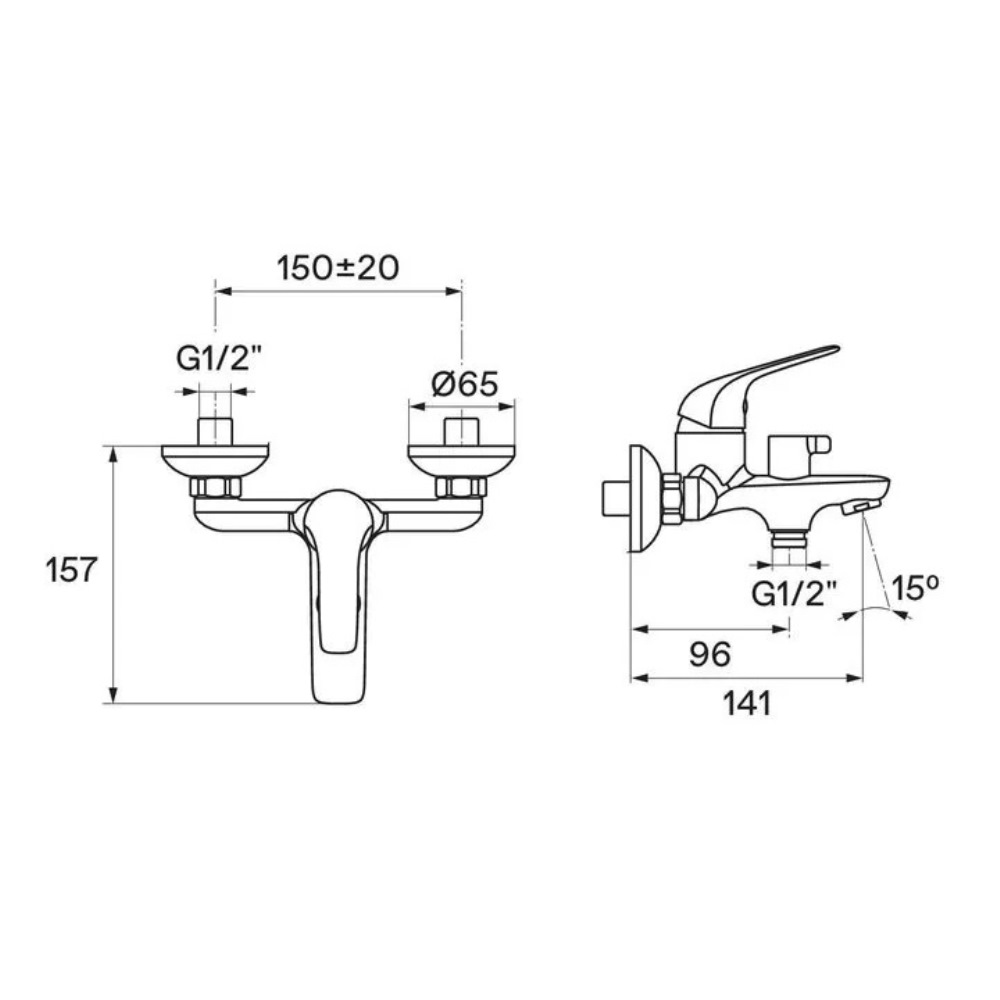 Смеситель для ванны Santek Нико имеет литой излив. Изготовлен из качественной латуни и имеет защитное покрытие, что способствует устойчивости к коррозии и резким перепадам температуры. Управление рычажное, настенный монтаж на два отверстия.