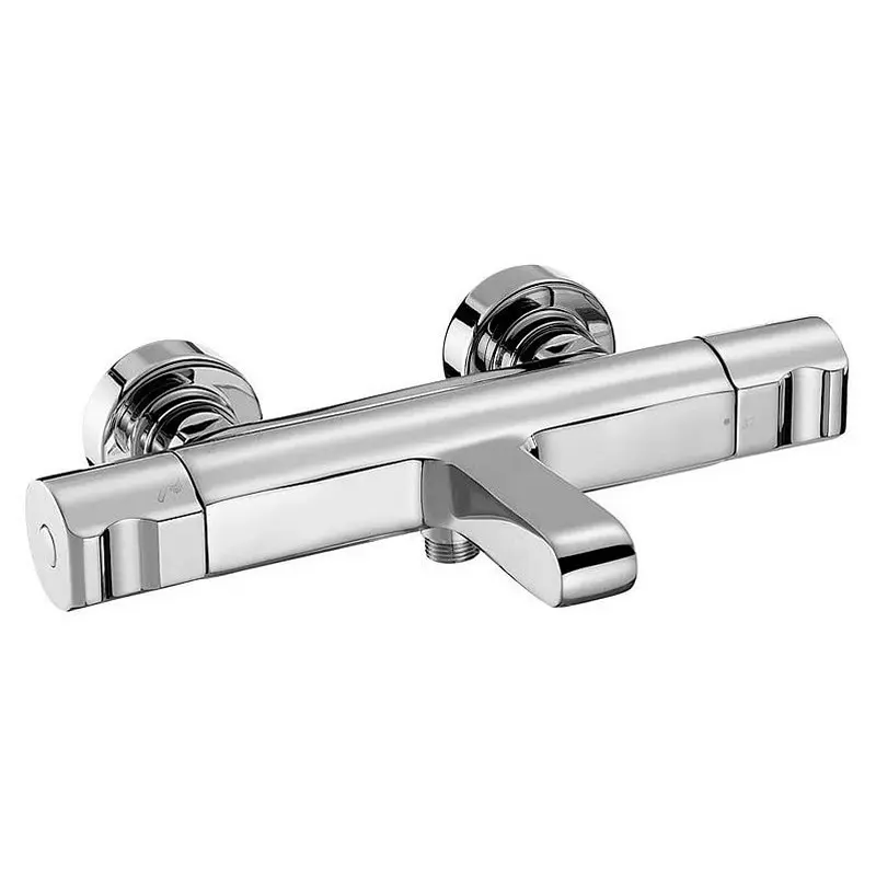 Смеситель для ванны Jacob Delafon E10870-CP оснащен термостатической системой для регулирования температуры и напора воды. Настенный монтаж на 2 отверстия. Литой излив 19 см.Смесители представляют собой сантехническое оборудование, оказывающее влияние на комфортность выполнения домашних дел и гигиенических процедур. Выбирая этот аксессуар для своего дома, необходимо учесть, что существуют смесители, имеющие определенное функциональное назначение и универсальные модели, в которых функции совмещены. Они классифицируются по типу управления и бывают: одновентильными; двухвентильными; термостатическими; джойстиковыми; сенсорными (электронными); кнопочными. Смесители имеют горизонтальный или вертикальный тип монтажа и традиционную (в форме трубки) или каскадную (плоскую и широкую) форму излива. Вода в смеситель подается двумя способами: через жесткую или гибкую подводку. А в зависимости от того, где устанавливается смеситель, выбирают его размеры. Для кухонной мойки подойдет высокая модель, тогда как для ванны лучше выбрать низкий смеситель. Он может крепиться настенным, напольным или набортным способом. Современные смесители — это не просто сантехническое оборудование, но и важный элемент дизайна ванной комнаты. Для защиты от коррозии его покрывают никелем, цинком, хромом или различными эмалями, делающие изделия более привлекательными и долговечными. Компании-производители выпускают модели, разные по стилю и цвету, а широкий и разнообразный модельный ряд позволяет выбрать подходящий аксессуар, соответствующий раковине, мойке или общему интерьеру ванной.