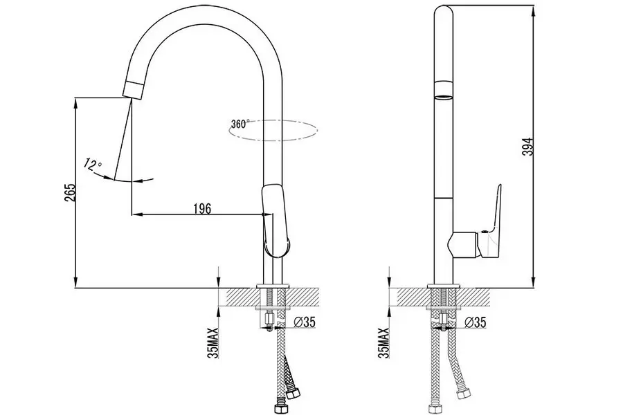 | Тип подводки | Гибкая, в комплекте |